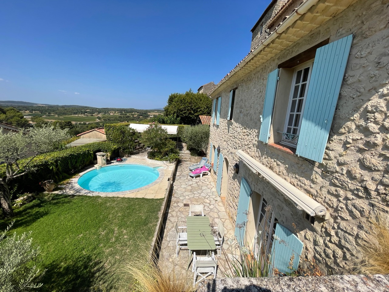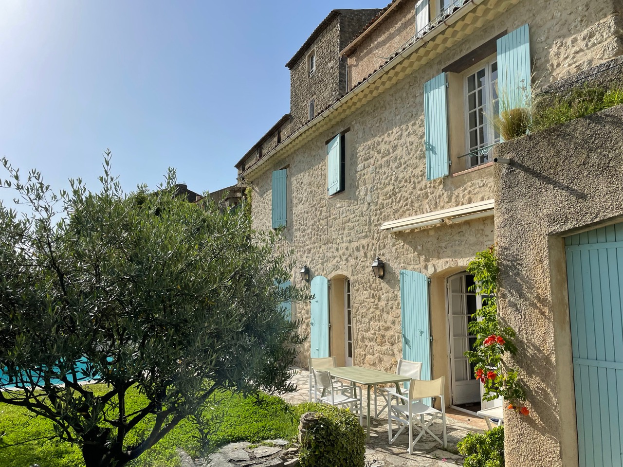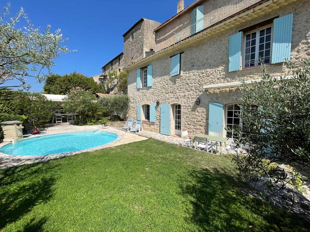 Le jardin est clos et arboré, une partie est engazonnée et accueille une piscine. Terrasse.